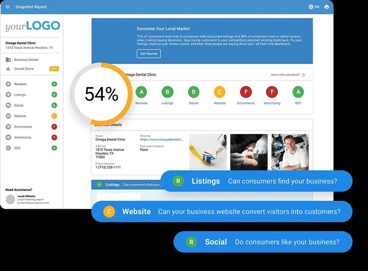 - Real-time updates on Google, Maps, Yelp, and industry-specific sites